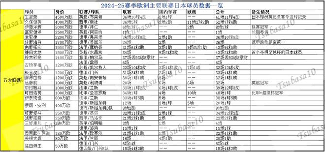 日本球员的冠军收获:英超、德甲、苏超、葡超、英格兰足总杯冠军